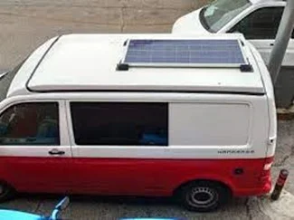 - Placas solares rígidas. Tienen protección contra las inclemencias del tiempo y una estructura de aluminio que permite la ventilación, lo que las hace más gruesas, aunque aumenta el rendimiento. Aunque son las más baratas, su grosor aumenta la altura de la furgoneta por lo que hay que homologar.